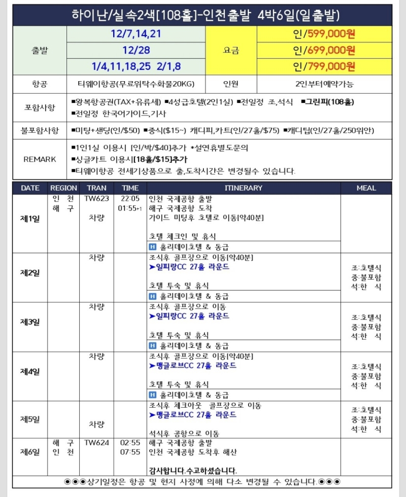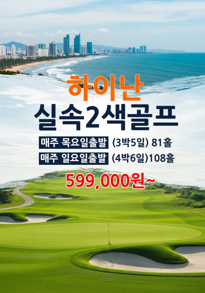 [중국/남부] 하이난 하이커우 실속2색!! 3박5일가성비갑 골프~